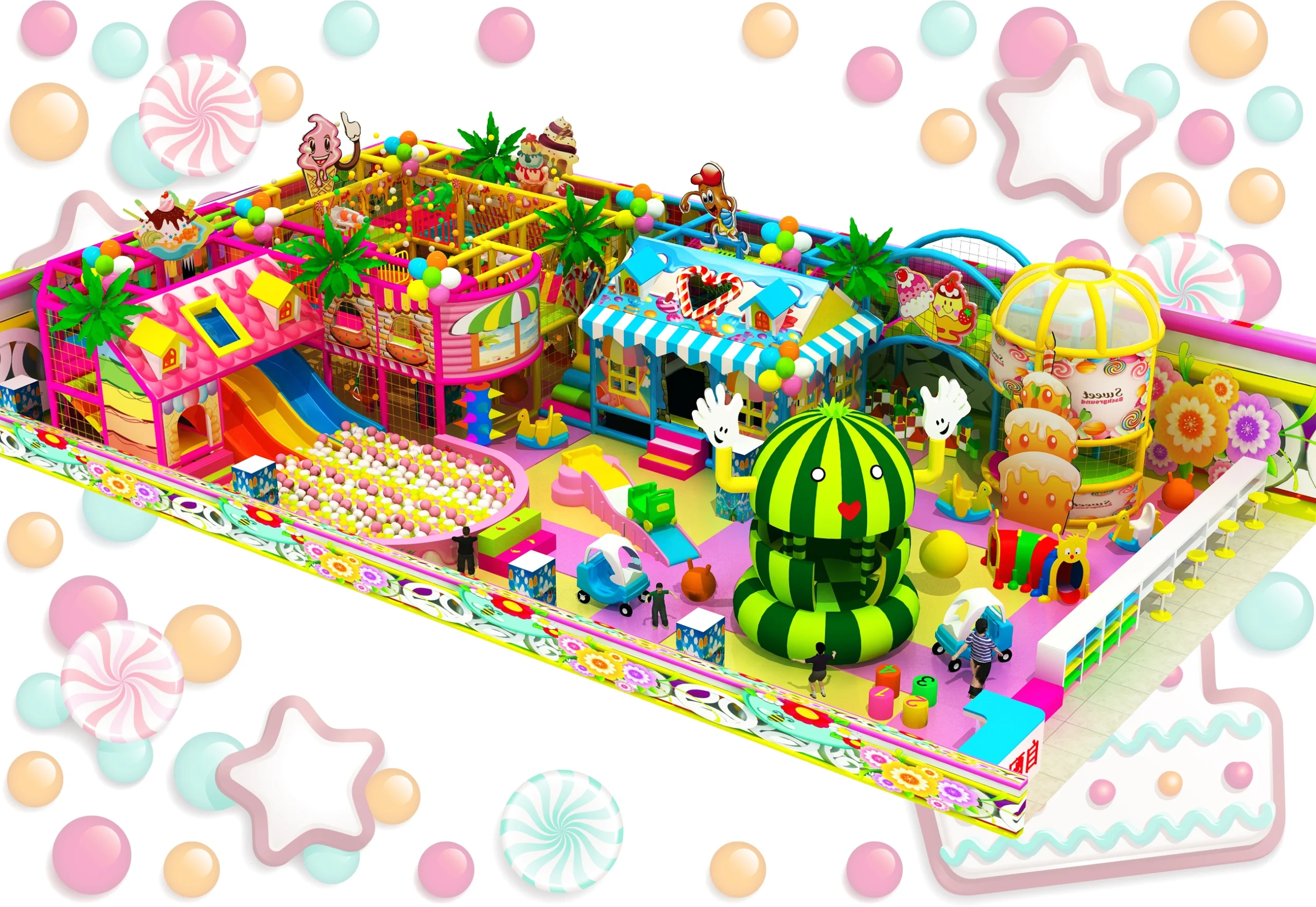 Commercial candy-fruit themed indoor playground with soft play, ball pit, cartoon zones & child-safe design. Safety-certified for FECs, malls & activity centers. Boosts family engagement & revenue.