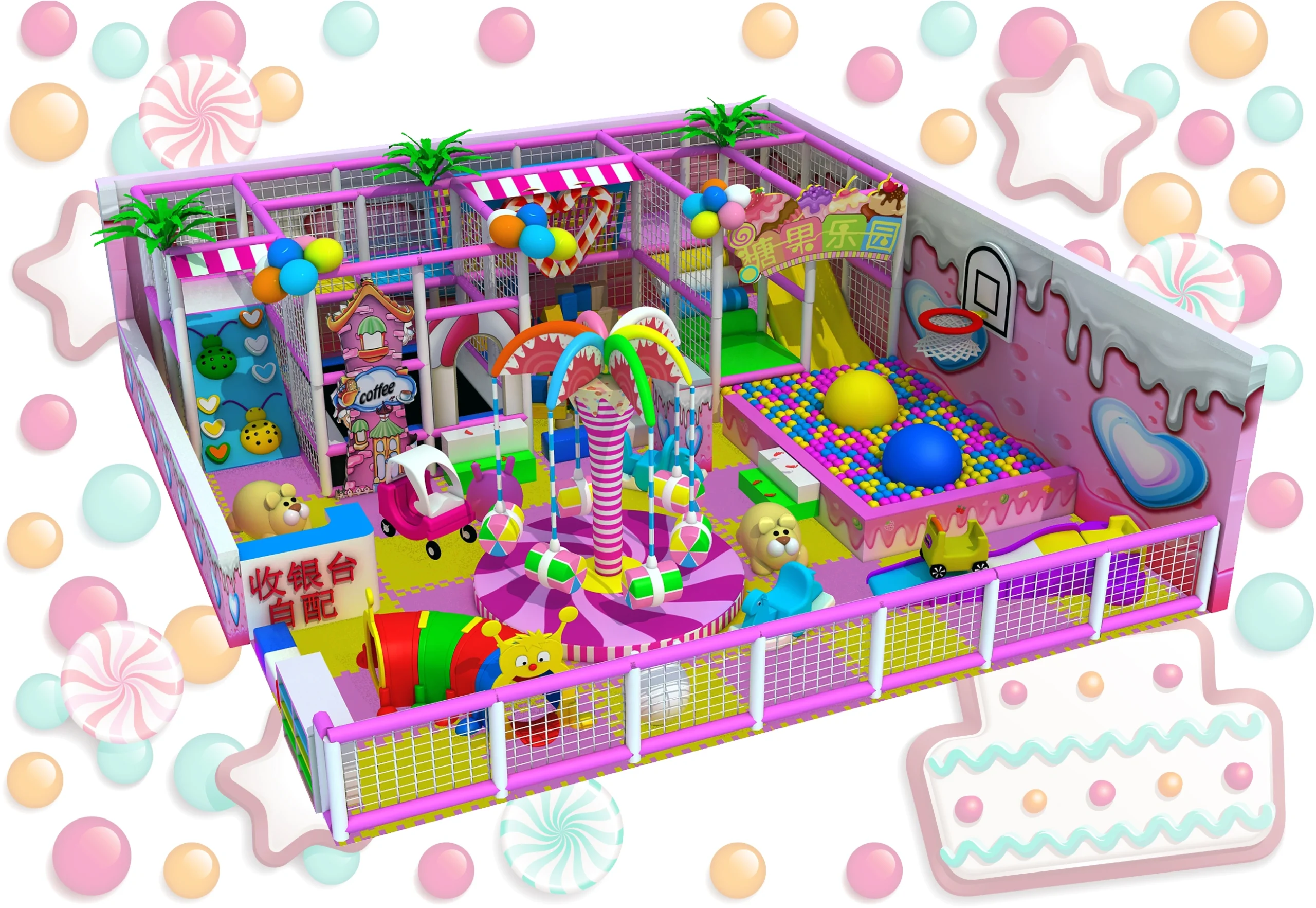 Immersive Candy & Sweet Theme: A vivid sweet-themed structure, decorated with lollipop, ice cream, cake and other cute food elements, creating a dreamy, fairy-tale play space that kids love.