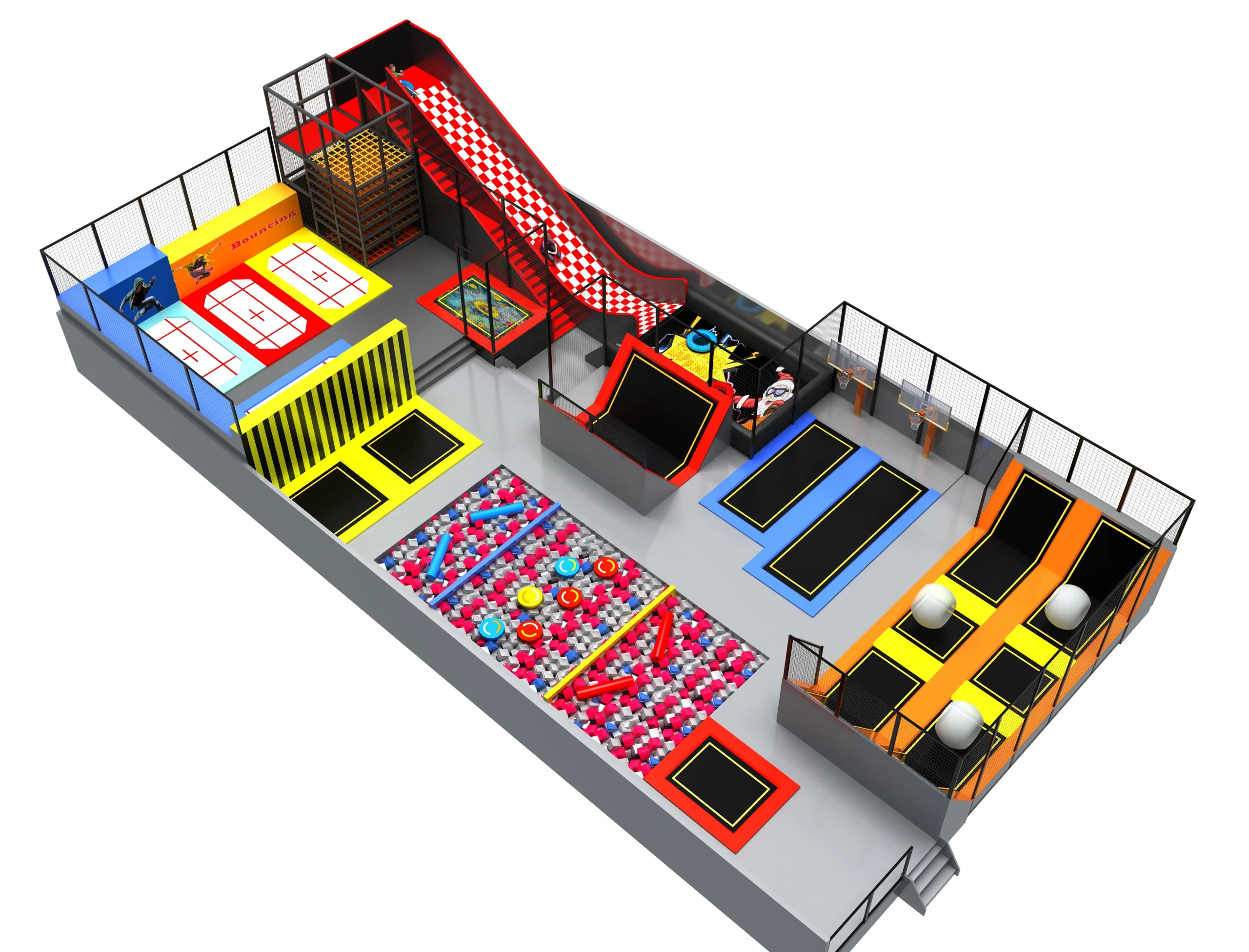 - Thrilling Slide Attraction: A multi-lane dry slide connected to the trampoline area, delivering an exhilarating sliding experience for all ages.