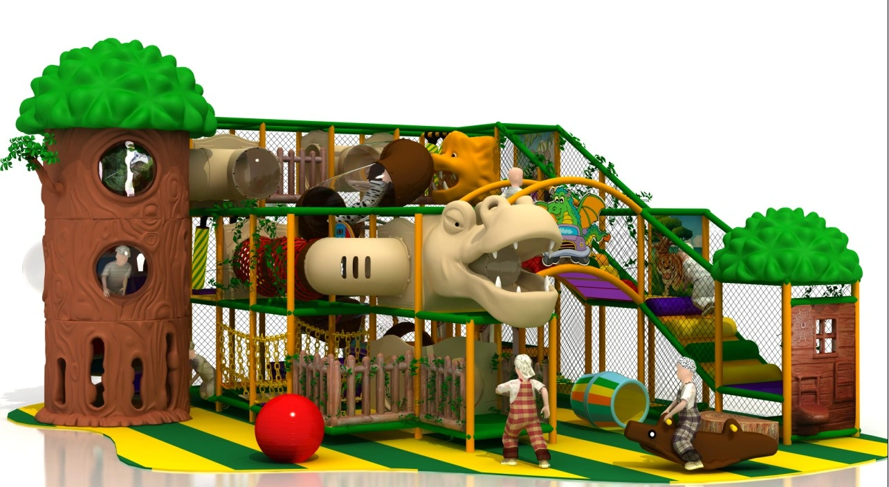Commercial jungle-themed indoor soft play with treehouse, animal slides, ball pit & child-safe design. Safety-certified for FECs, malls & activity centers. Boosts family engagement & revenue.