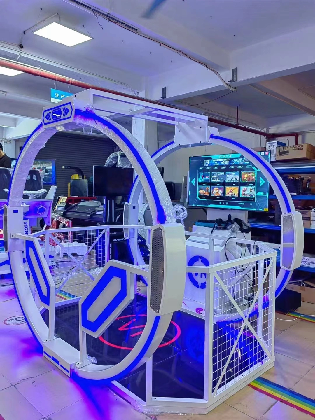 With overall dimensions of L2470 × W2300 × H2570 mm and a robust 300KG reinforced structure, the machine is built for durability and safety in high-traffic entertainment venues. Operating at AC220V with 1000W power consumption, it offers energy-efficient performance suitable for arcades, VR experience centers, family entertainment centers, and theme attractions.