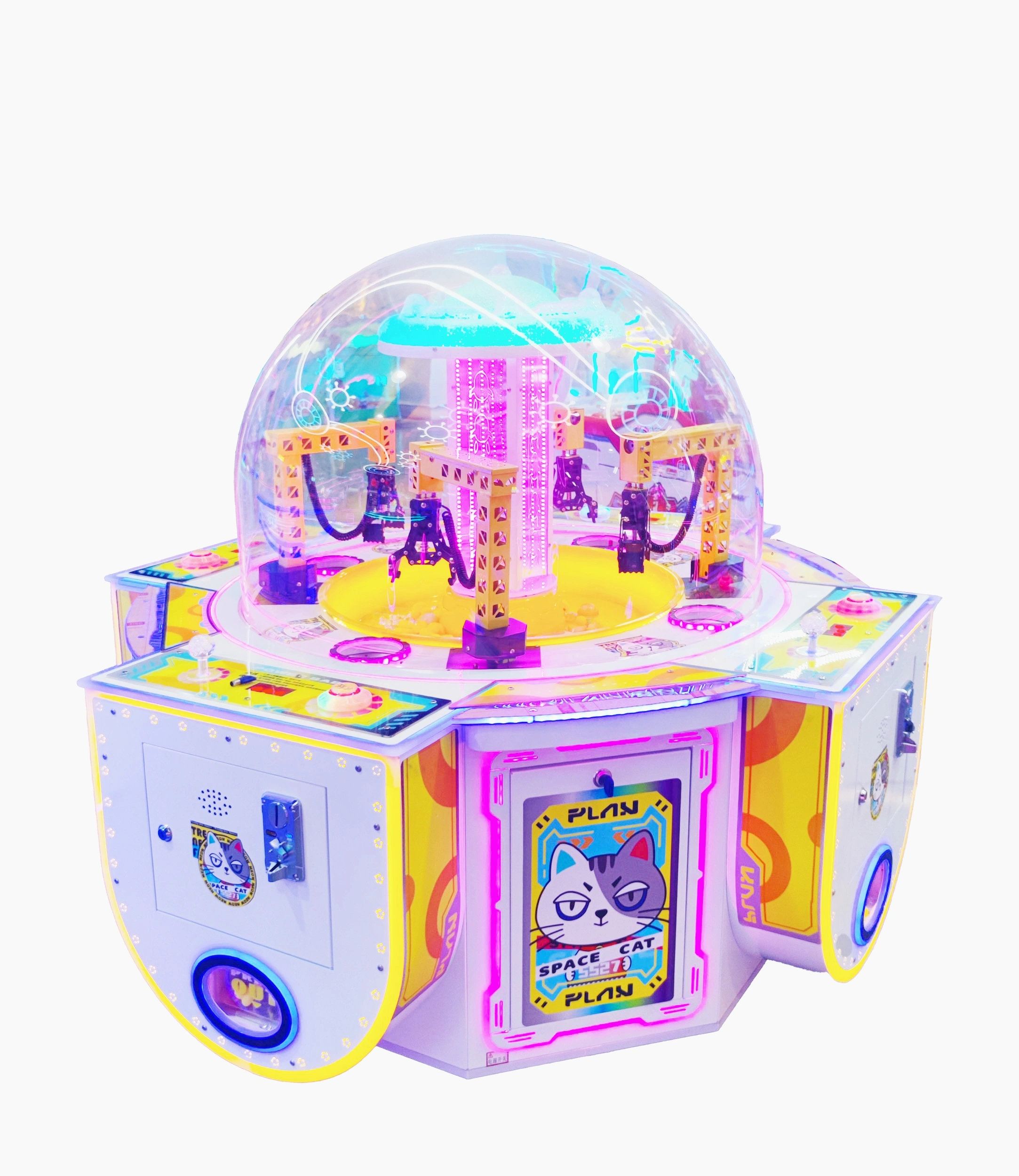 With dimensions of 135cm x 135cm x 140cm (53.1″ x 53.1″ x 55.1″), this machine fits perfectly in high-traffic locations and is designed to attract crowds with its eye-catching design and interactive gameplay.
