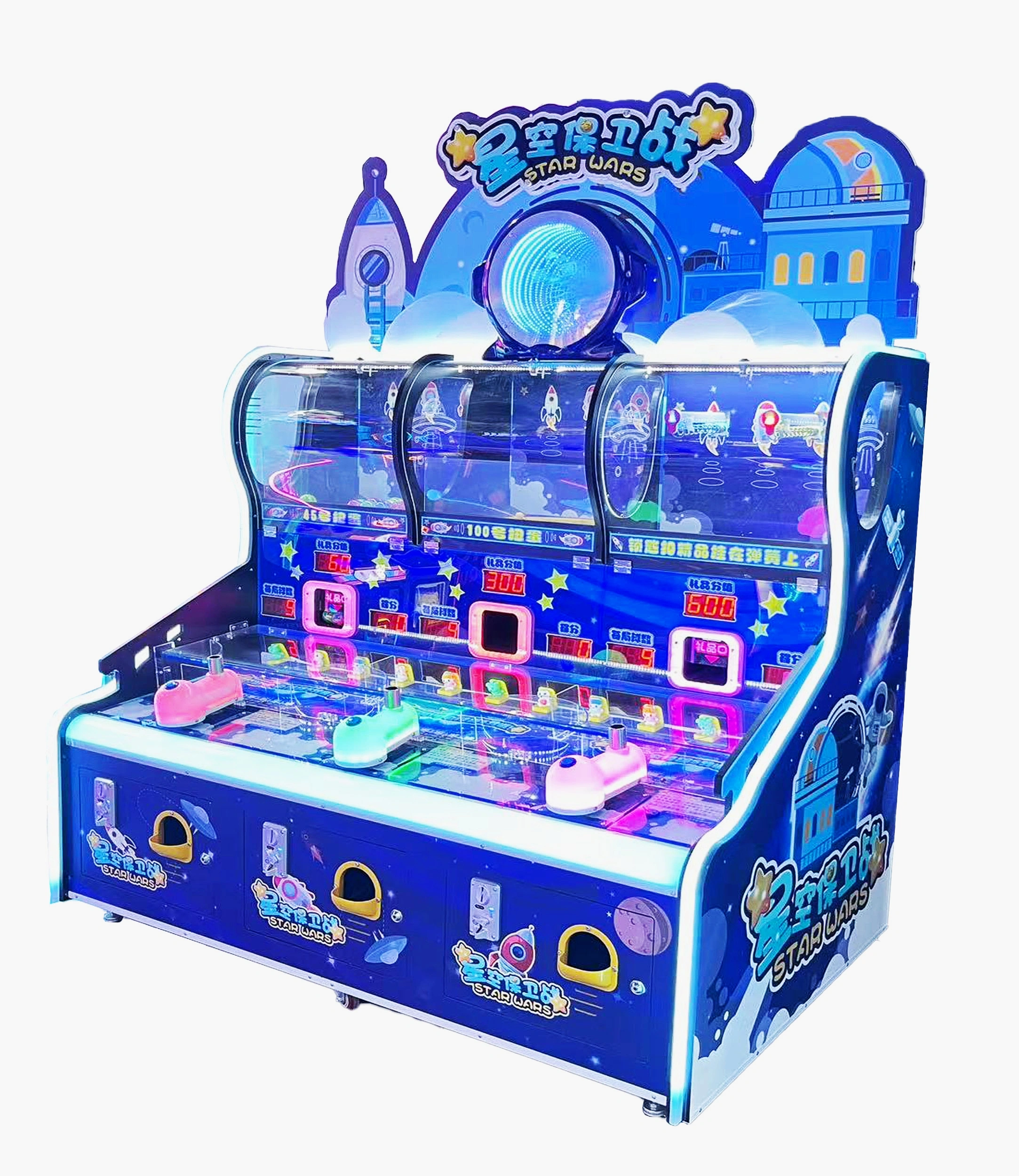 The Kuliku Space Defender Water Ball Shooting Game is a unique arcade machine designed for kids, offering an exciting water shooting experience with vibrant lights and fun rewards. Players shoot water balls at targets to accumulate points, which can then be redeemed for capsule toys (45/100mm) and keychain prizes. This game is designed to provide hours of interactive fun and is perfect for arcades, shopping malls, and entertainment centers.