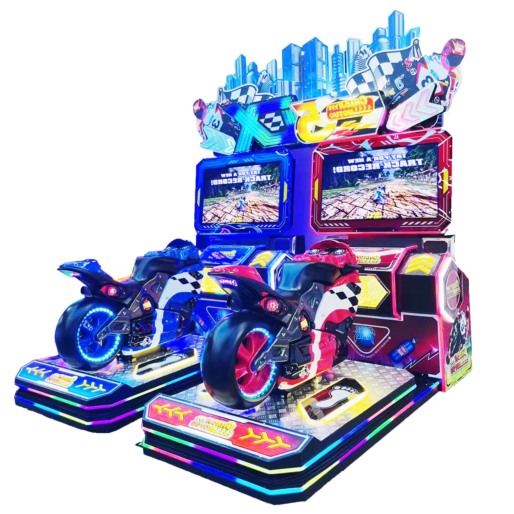 Players insert coins to start the game and enjoy immersive, real-life motorcycle driving simulation with synchronized motion feedback. The dynamic body movement enhances realism and player engagement, making it a strong attraction for arcades and family entertainment centers.