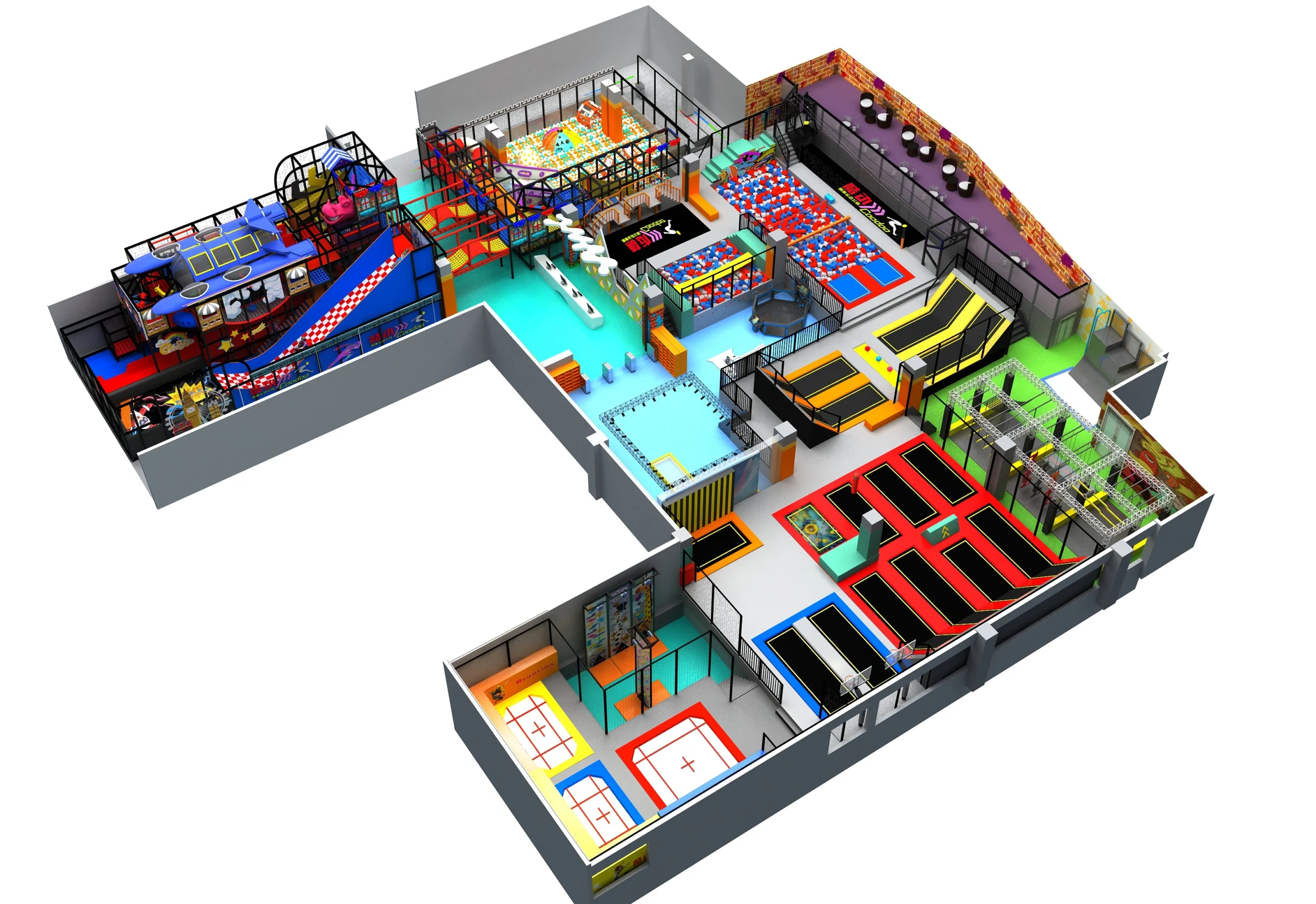 All-In-One Comprehensive Design: Integrates trampoline zone, ball pits, obstacle courses, soft play areas, sports zones, creating a one-stop adventure experience for kids.