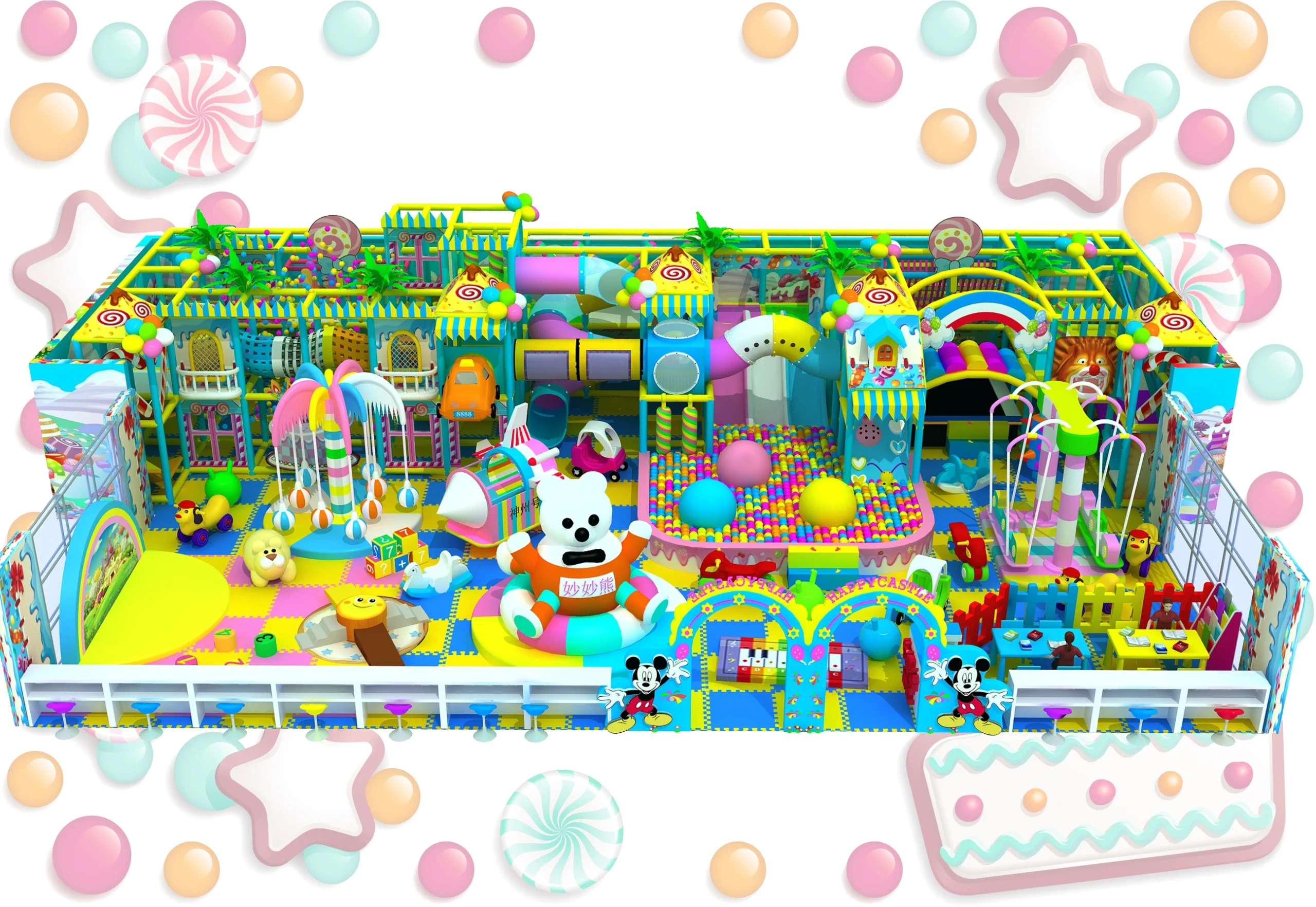 Elevate your commercial venue with our industry-leading large multi-themed indoor children’s playground—a turnkey, professional-grade complex that seamlessly integrates an immersive multi-layer castle soft play structure, large foam ball pit, rotating amusement equipment, cartoon IP interactive areas, and comprehensive safety protection into one high-energy, visually stunning attraction. This all-in-one solution is engineered to engage children of all ages, maximize space utilization, and deliver a proven return on investment (ROI) for commercial venue operators.
