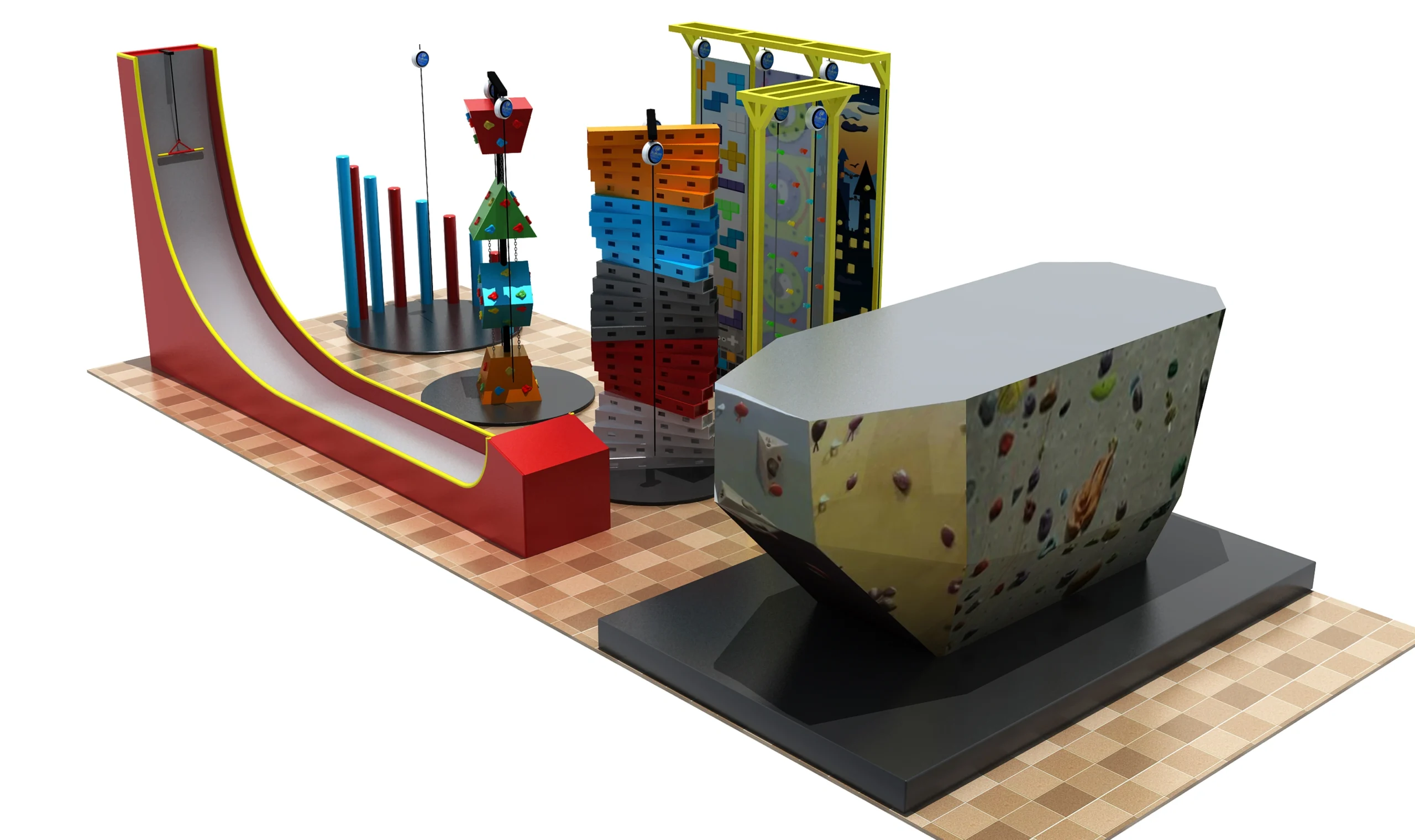 - Multi-Lane Themed Climbing Walls: Multiple themed tracks with auto-belay systems for competitive play