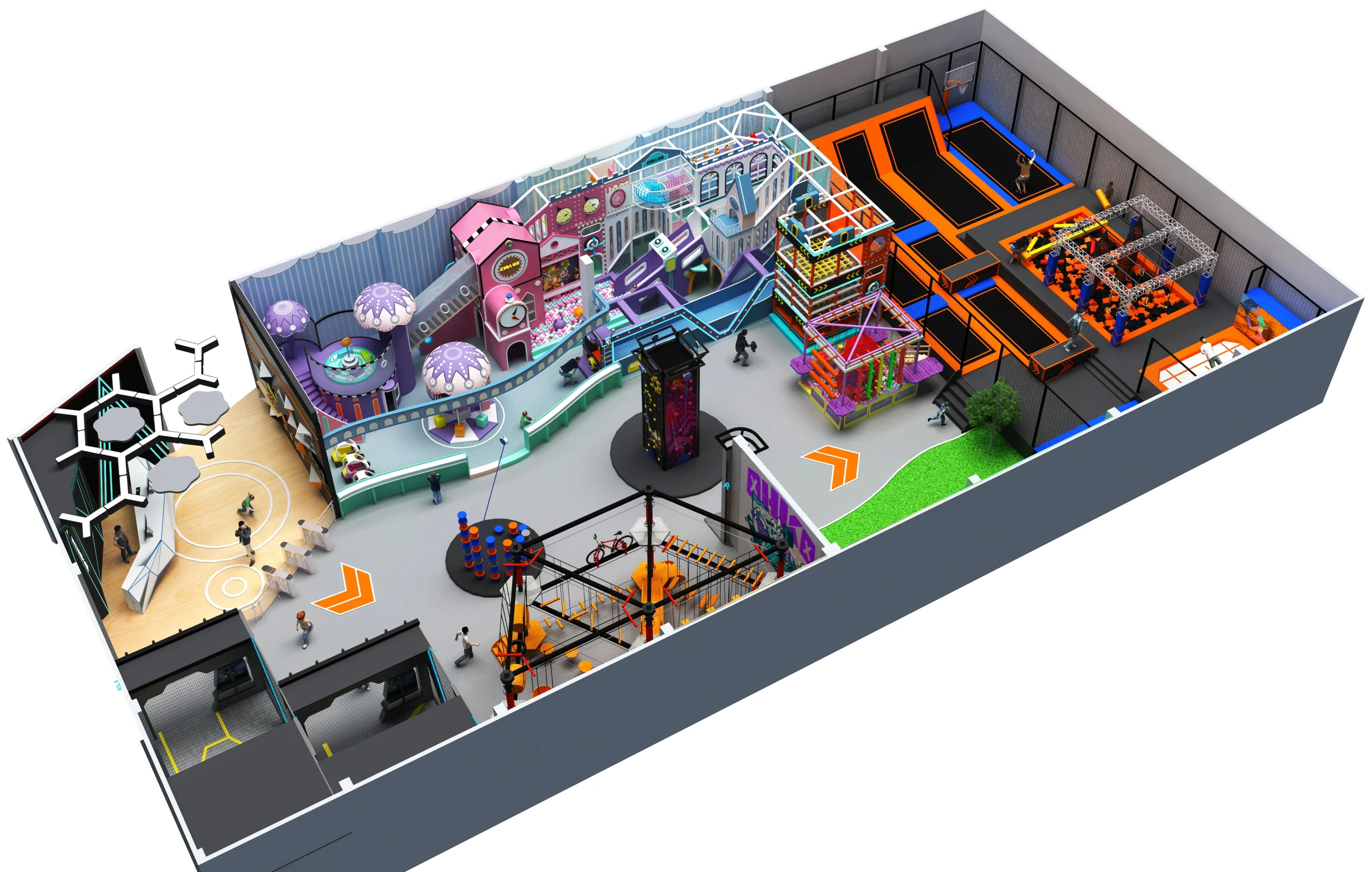 ✅ Fully Customizable Solution: Tailor the color scheme, specific attractions, and theme details (e.g., STEM/chemistry markings, candy land decor) to fit your venue’s exact space dimensions and brand identity.