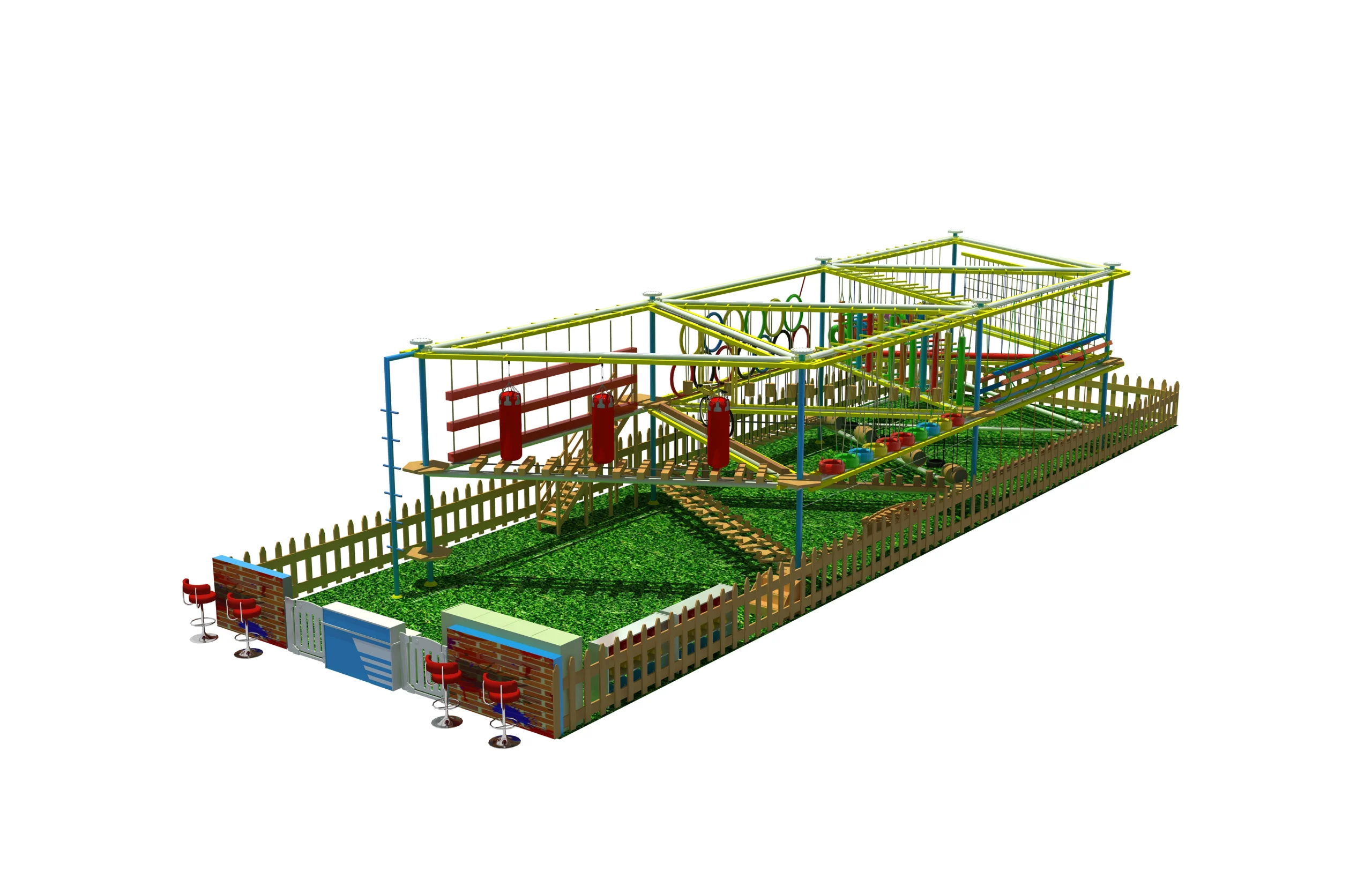 Elevate your outdoor adventure park, family entertainment center (FEC), resort, or campground with our industry-leading rectangular multi-level ropes course—a fully enclosed, weather-resistant adventure complex designed to deliver year-round fun for guests of all ages. This versatile attraction combines the thrill of high-ropes challenges with a complete, turnkey playground solution, making it the perfect centerpiece for both outdoor and indoor venues.