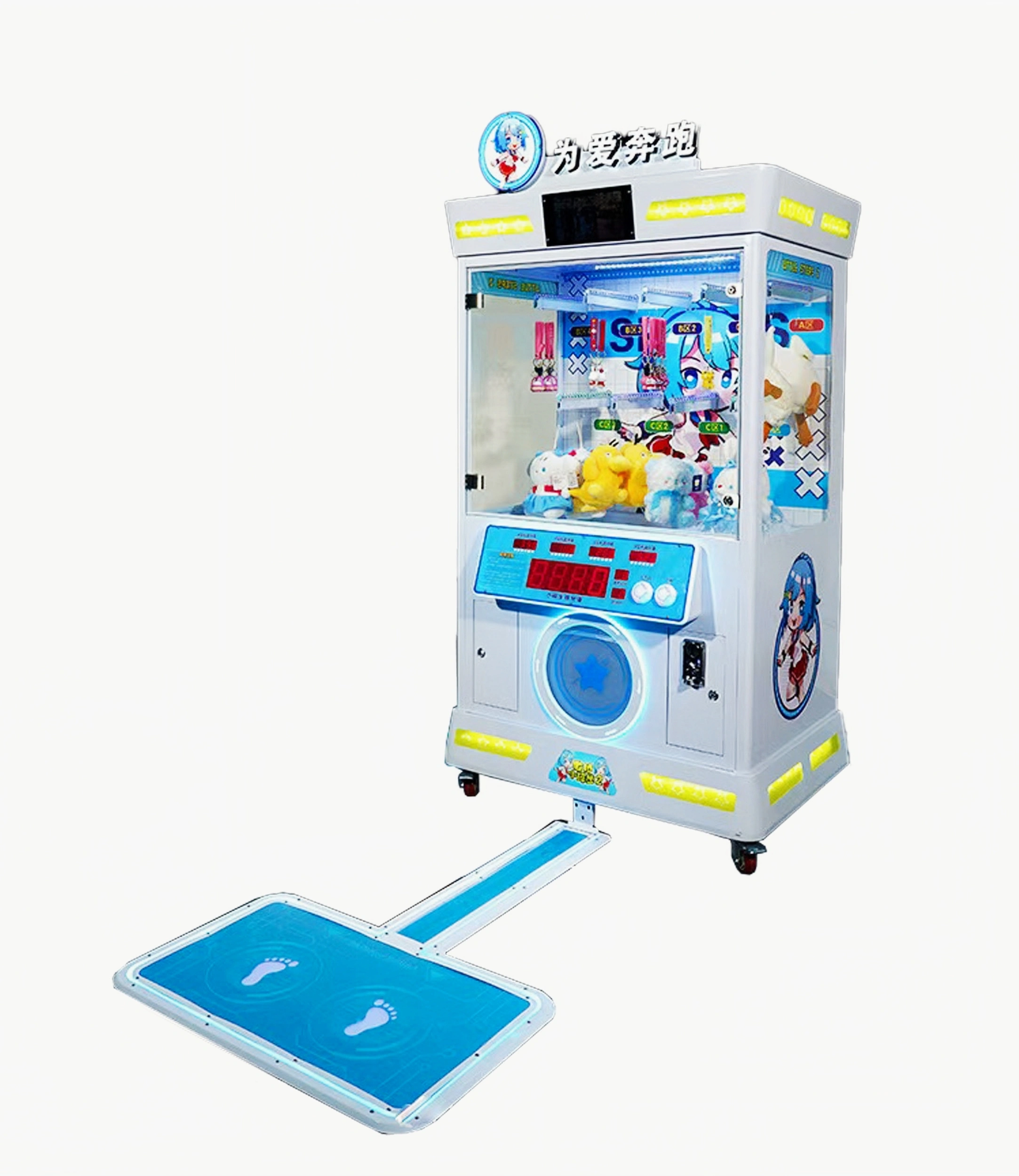 Players drop a token, stand on the pedals, and start running in place! When the step count hits the target within the time limit → gifts drop automatically! Super addictive new gameplay that makes everyone scream and cheer.