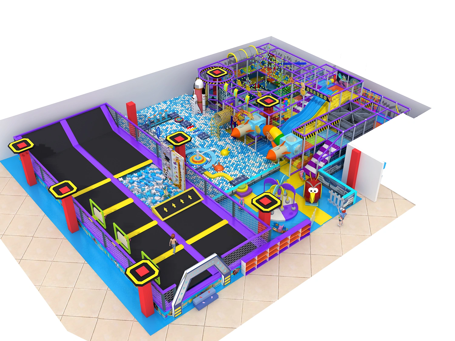 Elevate your family entertainment center (FEC), shopping mall, or large indoor venue with our industry-leading space-themed comprehensive indoor trampoline park—a turnkey, multi-functional complex that seamlessly integrates professional trampolines, soft play structures, ball pits, slides, and interactive zones into one visually stunning, high-capacity attraction. This all-in-one solution is engineered to captivate children of all ages, optimize space utilization, and deliver a proven return on investment (ROI) for commercial venue operators.