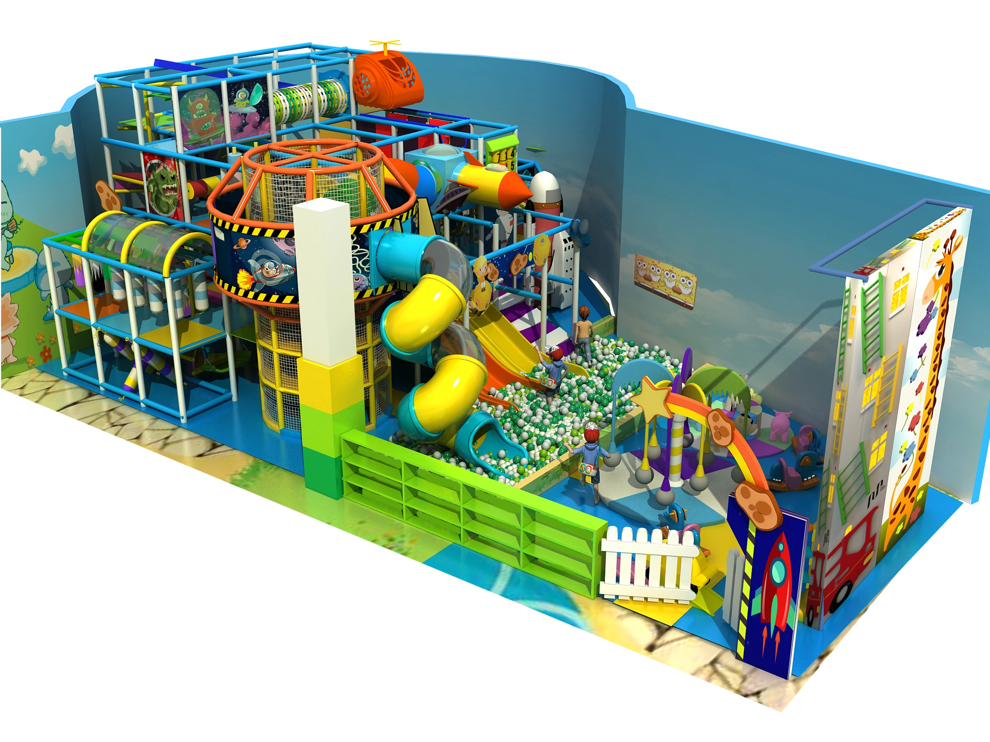 • Space/Rocket Themed Zones: Immersive rocket, astronaut, and space-themed play areas