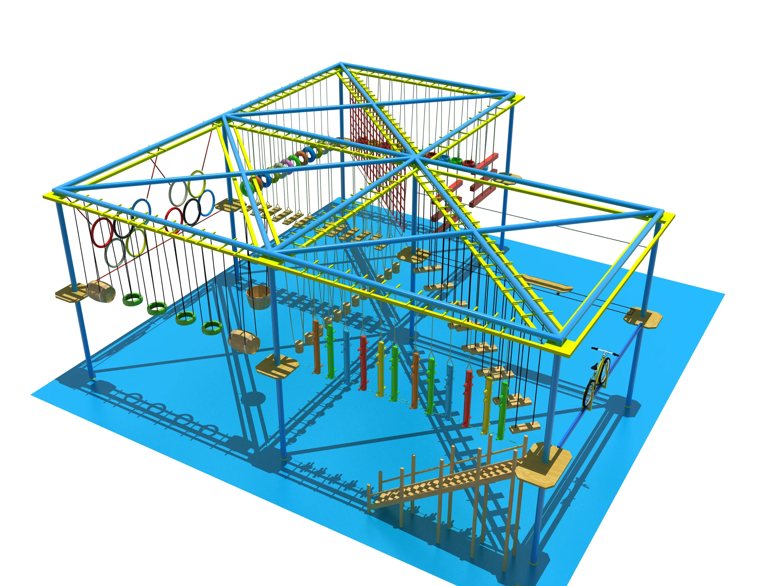 ✅ Comprehensive Aerial Challenge Package: Features a wide spectrum of obstacles including colorful circular ring traverses, vertical climbing columns, rope ladders, swinging wooden elements, and a thrilling sky bike challenge. This diverse mix ensures high replay value, keeping guests engaged for extended periods.