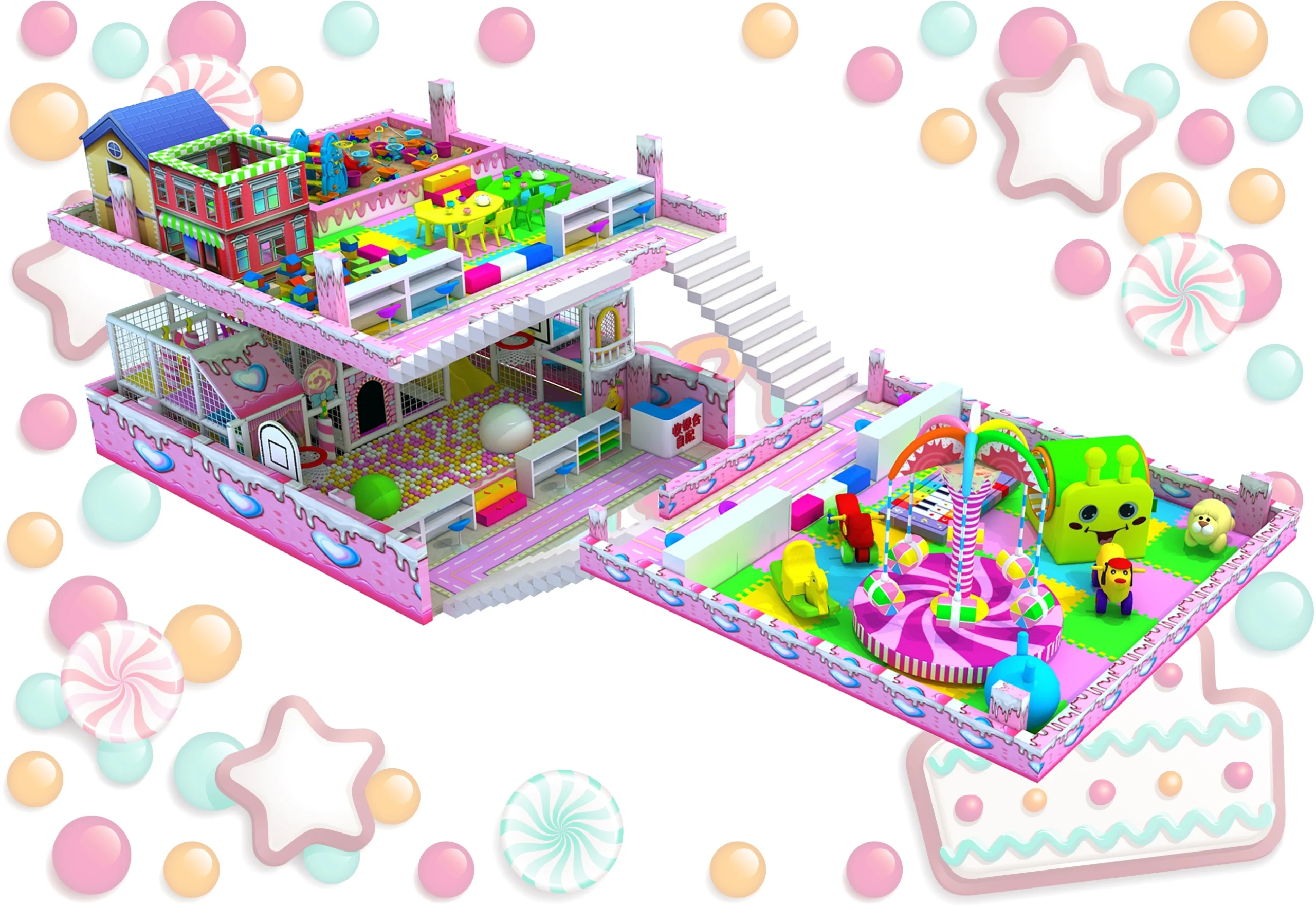 Elevate your commercial venue with our industry-leading two-story candy-themed indoor children’s playground—a turnkey, professional-grade complex that seamlessly integrates an immersive 2nd-floor simulation street scene soft play structure, large foam ball pit, interactive amusement equipment, parent-child leisure areas and comprehensive safety protection into one high-energy, visually stunning attraction. This all-in-one solution is engineered to engage children of all ages, maximize vertical space utilization, and deliver a proven return on investment (ROI) for commercial venue operators.