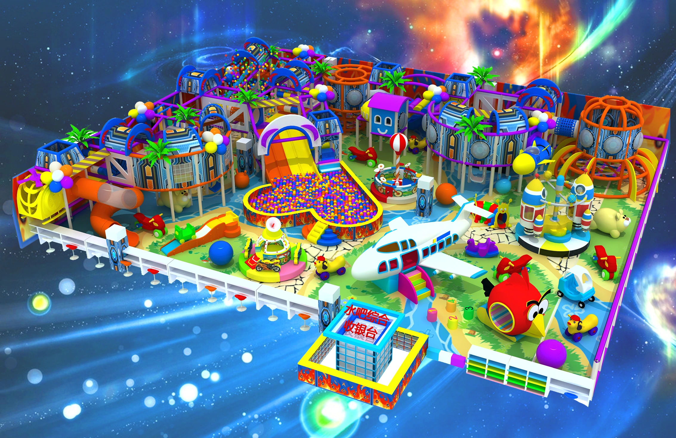 Elevate your family entertainment center (FEC), shopping mall, or indoor play center with our industry-leading water bar comprehensive theme large indoor soft play children’s playground—a comprehensive, turnkey solution that seamlessly integrates multi-level play structures, slides, ball pits, climbing areas, a dedicated toddler zone, and a convenient water bar/checkout area into one visually stunning, high-capacity complex. This all-in-one attraction is engineered to captivate children of all ages, promote physical development, optimize space utilization, and deliver a proven return on investment (ROI) for commercial venues.